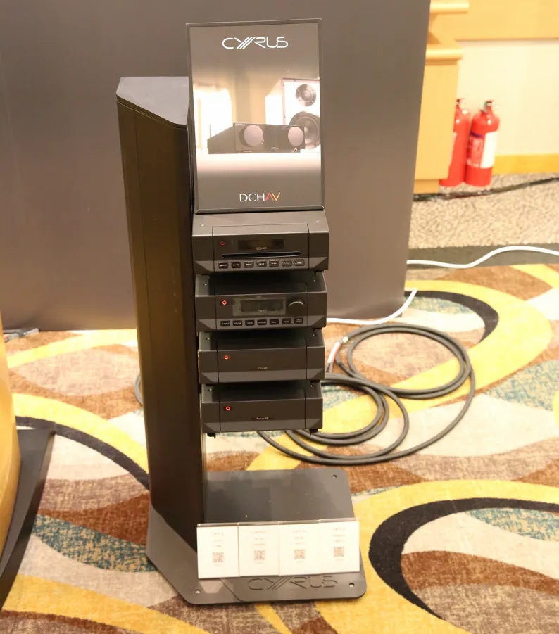 静态展示中的Cyrus器材,包括CDT-XR CD播放器、PSU-XR外置电源、PRE-XR前级放大器和POWER-XR立体声后级